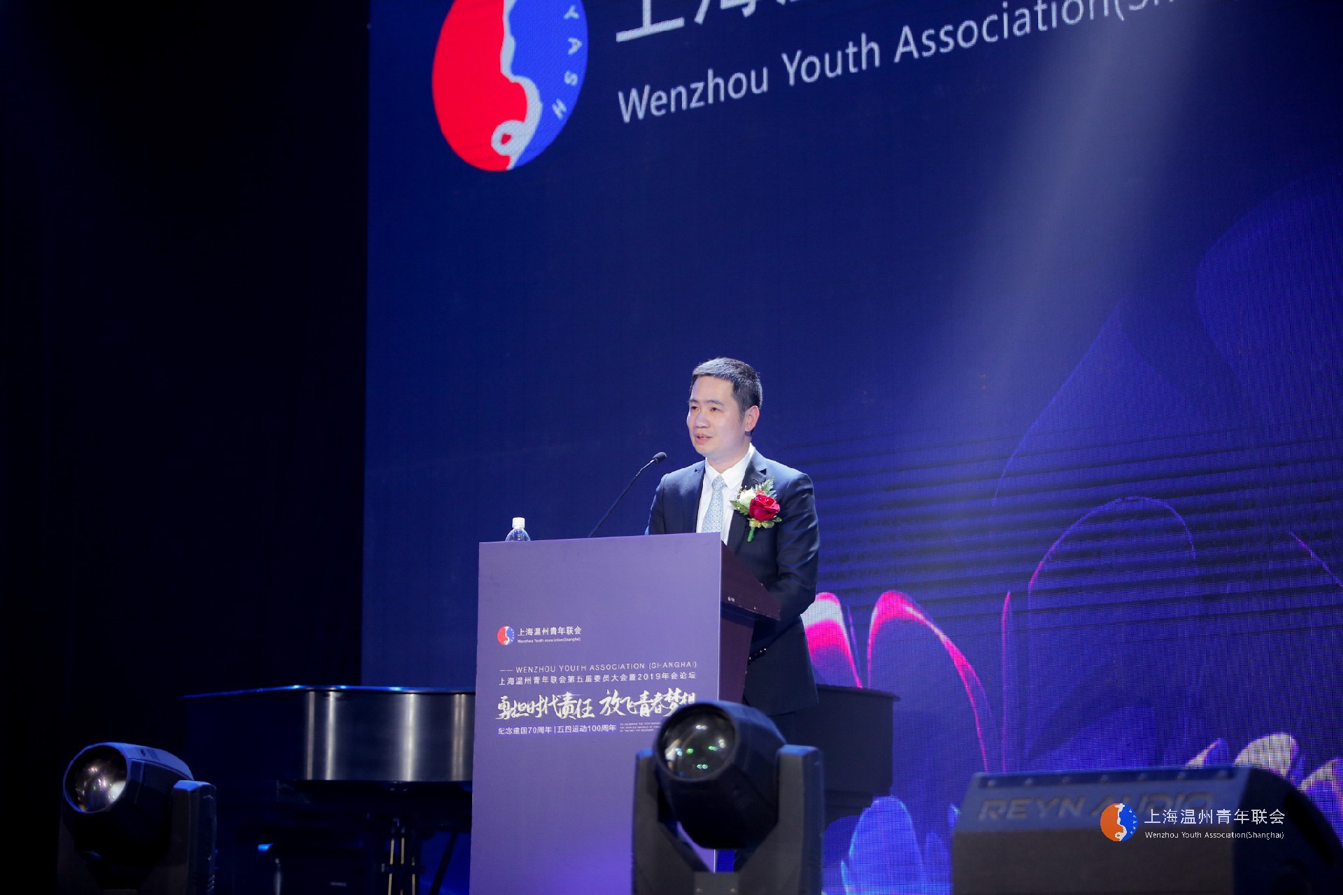 第四届委员会主席王均豪致辞,他回顾了上海温青联创立15年来的历程与成绩,表达了对上海温青联未来发展的祝福与期盼。他指出青年人的伟大梦想不是等来、喊来的,而是拼出来、干出来的,青春的底色永远是奋斗,希望青年一代能够主动担负起新时代使命,在青联大平台上成就大梦想,向世界发出“温青好声音”。